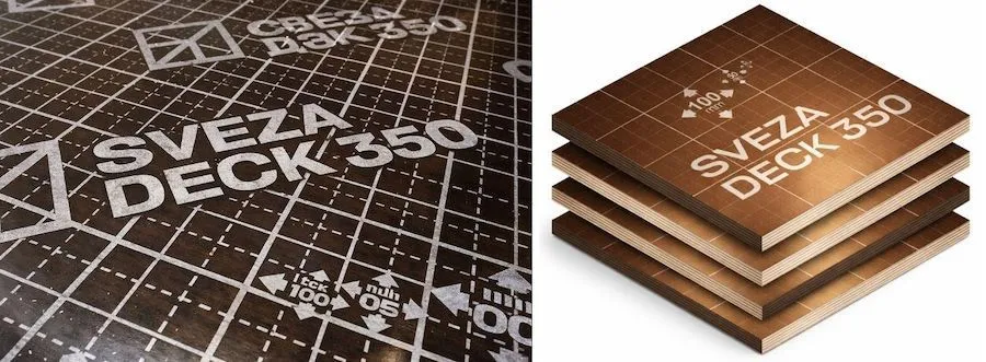 SVEZA Deck 350 — это ламинированная фанера с заводской разметочной сеткой, предназначенная для использования в конструкция для монолитного литья бетона: