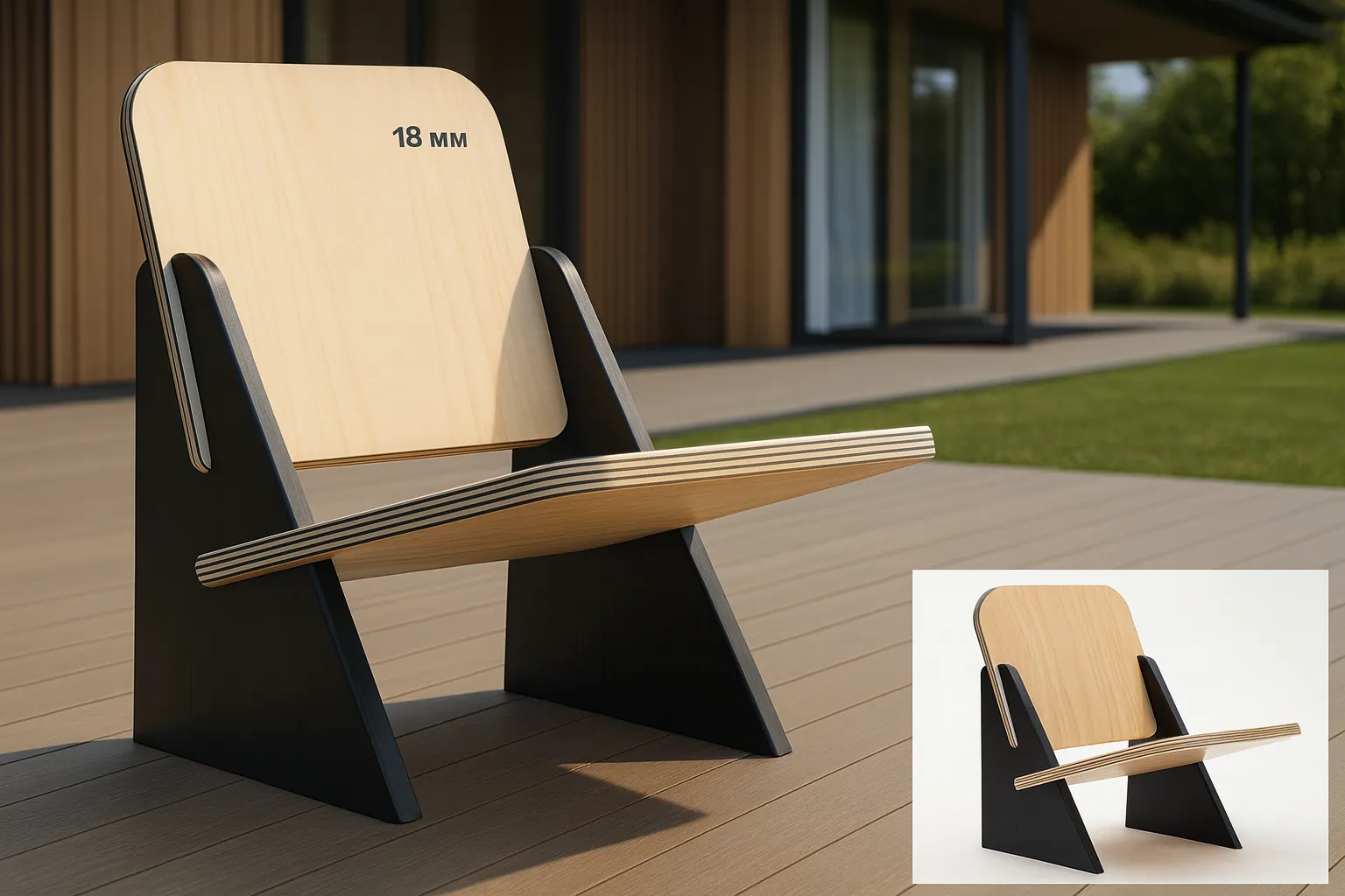 Как сделать стильное фанерное кресло для дачи? Все просто - всего 3 элементарные детали из гладкой, ламинированной фанеры толщиной 18 мм. Используйте этот простой принцип, который даже не предусматривает крепеж. А деталям кресла можно придать практически любую форму.